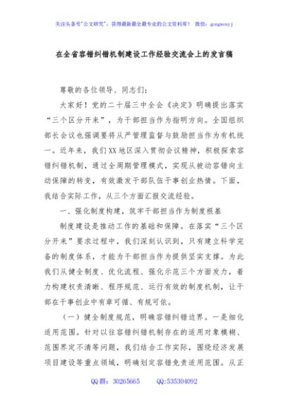 / 在全省容错纠错机制建设工作经验交流会上的发言稿