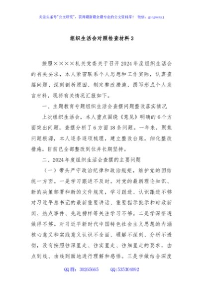 / 组织生活会对照检查材料3