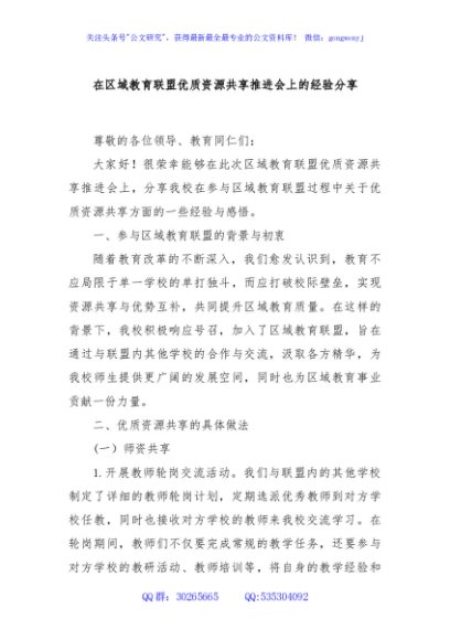 / 在区域教育联盟优质资源共享推进会上的经验分享