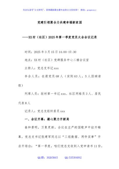 / 2.XX村(社区)2025年第一季度党员大会会议记录