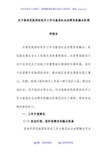 / 3.关于推进民族团结进步工作与基层社会治理有效融合的调研报告