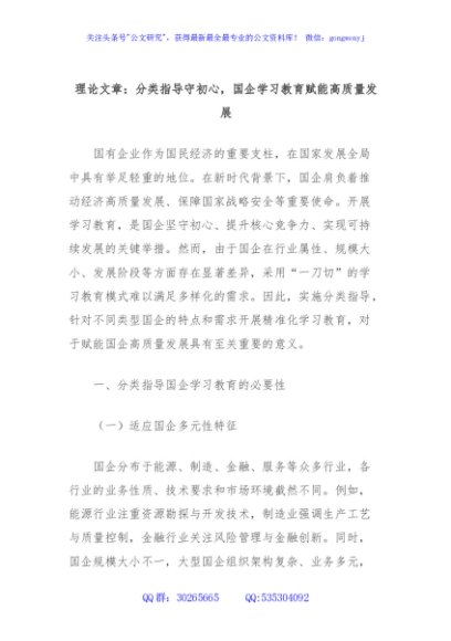 / 理论文章:分类指导守初心,国企学习教育赋能高质量发展