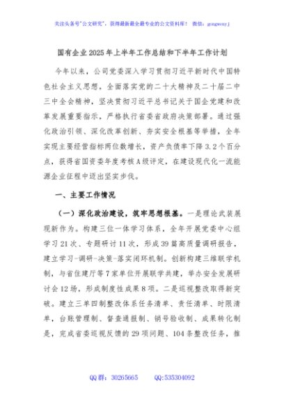 / 国有企业2025年上半年工作总结和下半年工作计划