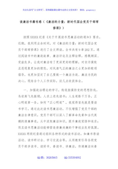 / 读廉洁书籍有感(《廉洁的力量:新时代国企党员干部常修课》)