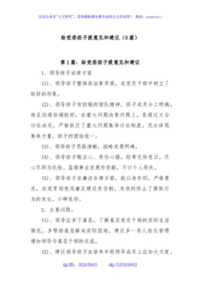 / (5篇)给党委班子提意见和建议