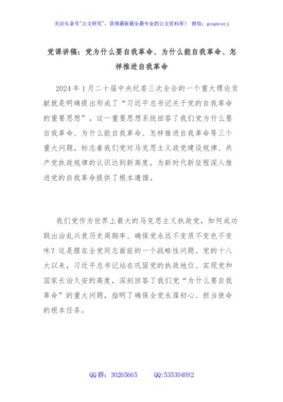 / 党课讲稿:党为什么要自我革命、为什么能自我革命、怎样推进自我革命