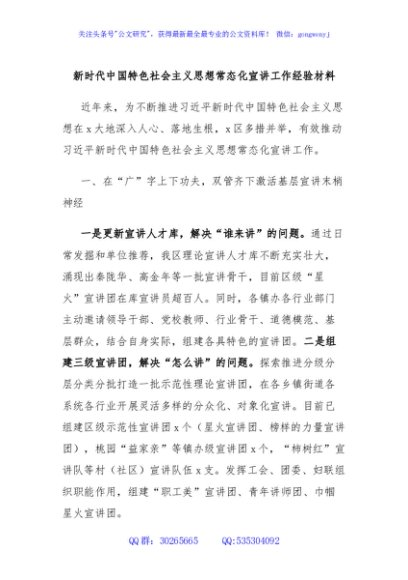 / 新时代中国特色社会主义思想常态化宣讲工作经验材料