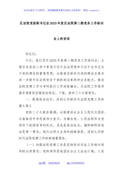 / 区法院党组副书记在2025年度区法院第二期党务工作培训会上的讲话