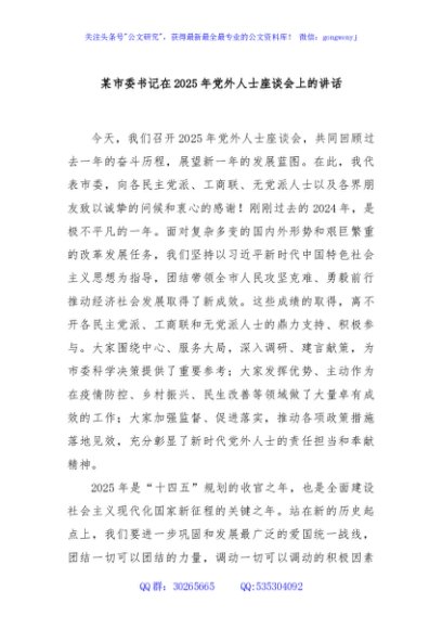 / 某市委书记在2025年党外人士座谈会上的讲话