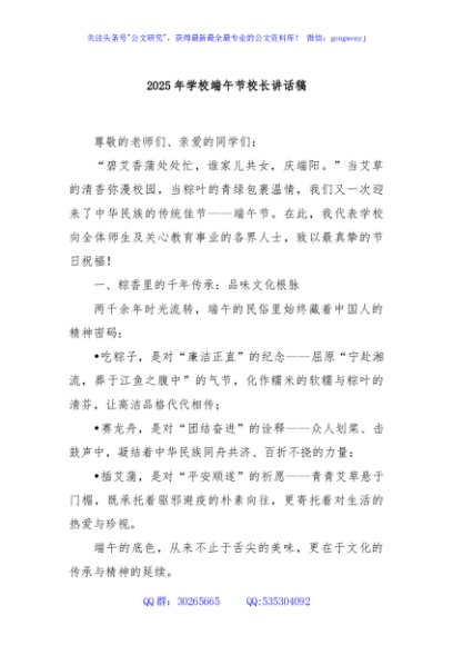 / 2025年学校端午节校长讲话稿