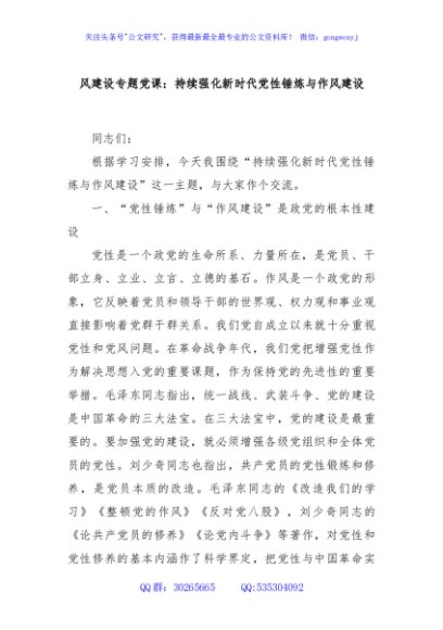/ 风建设专题党课:持续强化新时代党性锤炼与作风建设