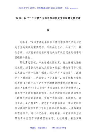 / XX市:以“三个过硬”为抓手推动机关党组织建设提质增效