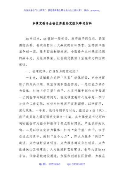 / 乡镇党委评全省优秀基层党组织事迹材料