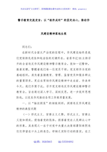 / 警示教育交流发言:以“铁杵成针”的坚定决心,推动作风建设精神落地生根