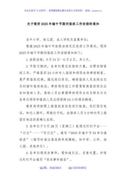 / 关于做好2025年端午节期间值班工作安排的通知