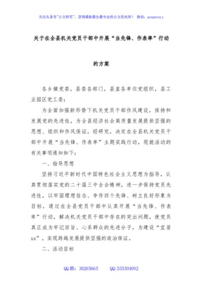 / 关于在全县机关党员干部中开展“当先锋、作表率”行动的方案