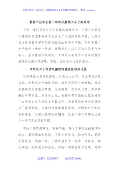 / 县委书记在全县干部作风整顿大会上的讲话