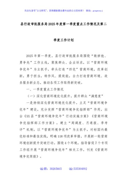 / 县行政审批服务局2025年度第一季度重点工作情况及第二季度工作计划