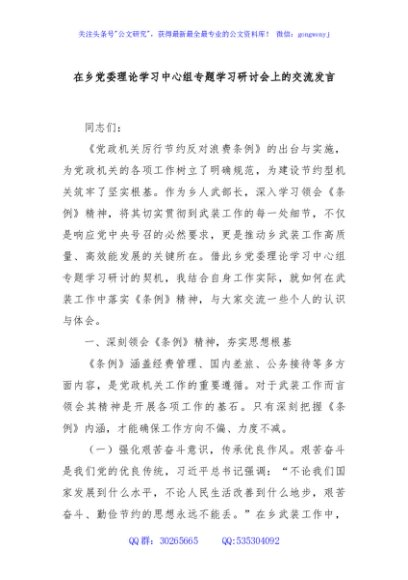 / 在乡党委理论学习中心组专题学习研讨会上的交流发言