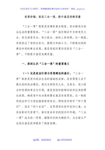 / 党课讲稿:抓实三会一课,提升基层党建质量