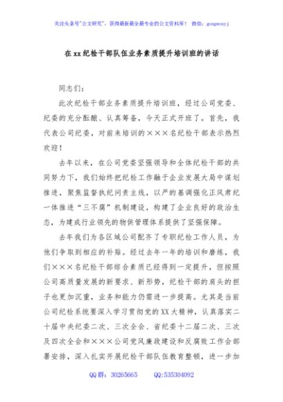 / 在xx纪检干部队伍业务素质提升培训班的讲话