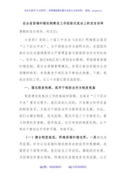 / 在全省容错纠错机制建设工作经验交流会上的发言材料