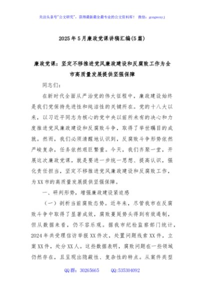 / (5篇)2025年5月廉政党课讲稿汇编