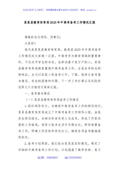 / 某某县教育体育局2025年中高考备考工作情况汇报