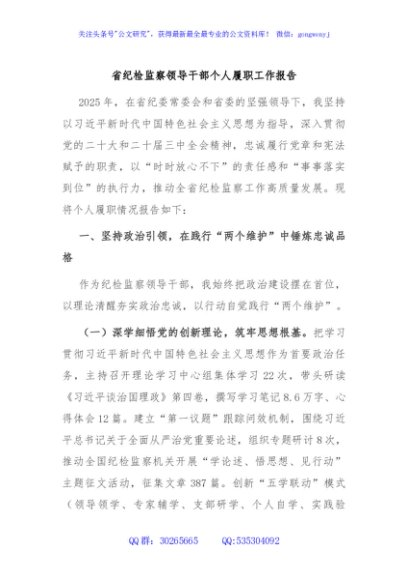 / 省纪检监察领导干部个人履职工作报告