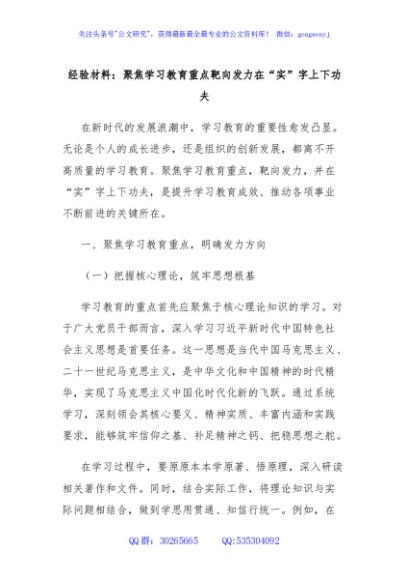 / 经验材料:聚焦学习教育重点靶向发力在“实”字上下功夫