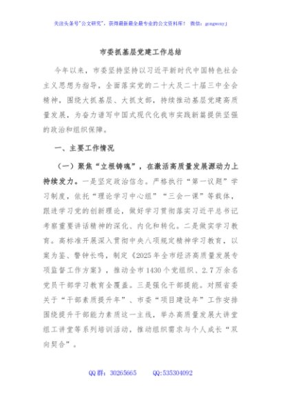 / 市委抓基层党建工作总结