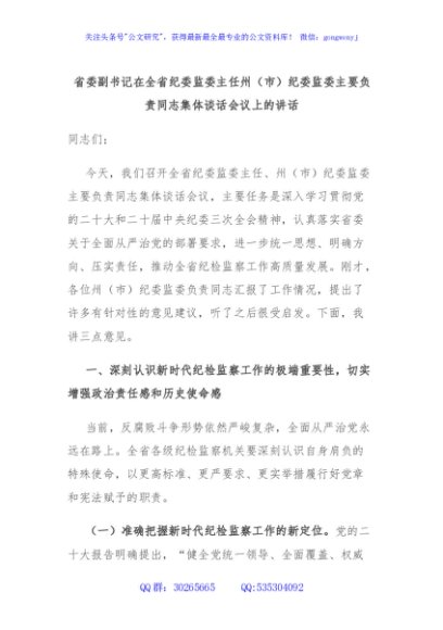 / 省委副书记在全省纪委监委主任州(市)纪委监委主要负责同志集体谈话会议上的讲话