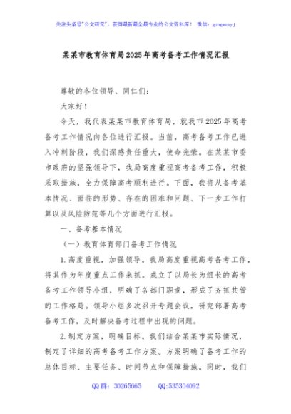 / 某某市教育体育局2025年高考备考工作情况汇报