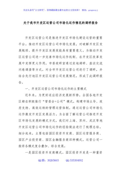 / 关于我市开发区运营公司市场化运作情况的调研报告