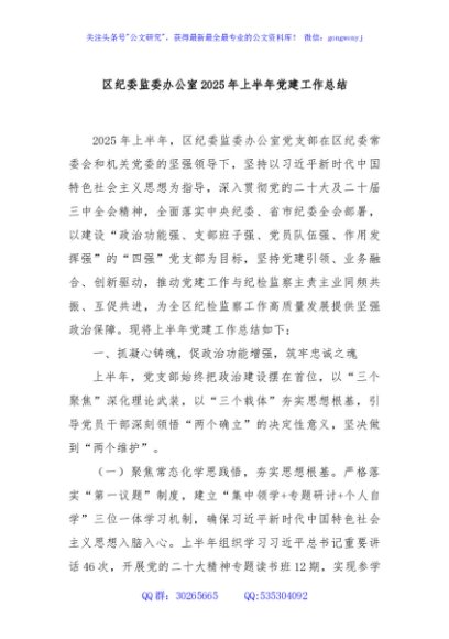 / 区纪委监委办公室2025年上半年党建工作总结