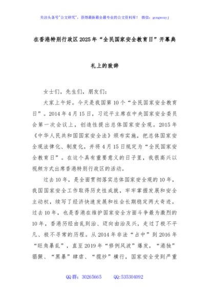 / 在香港特别行政区2025年“全民国家安全教育日”开幕典礼上的致辞
