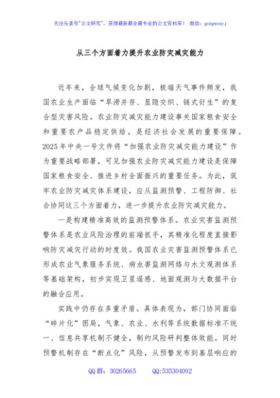 / 从三个方面着力提升农业防灾减灾能力