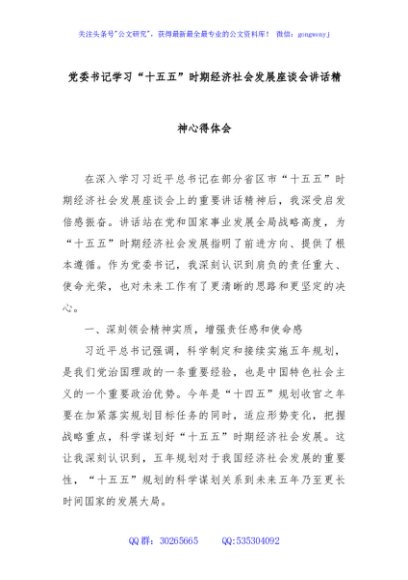 / 党委书记学习“十五五”时期经济社会发展座谈会讲话精神心得体会