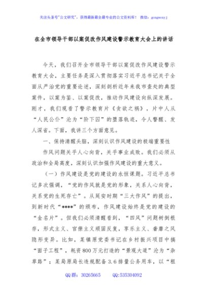 / 在全市领导干部以案促改作风建设警示教育大会上的讲话