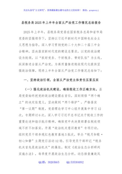 / 县税务局2025年上半年全面从严治党工作情况总结报告