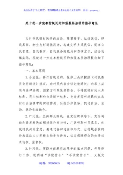 / 关于进一步完善村规民约加强基层治理的指导意见