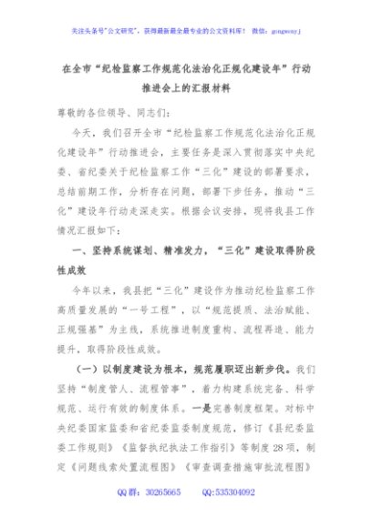 在全市“纪检监察工作规范化法治化正规化建设年”行动推进会上的汇报材料