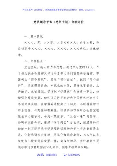 / 党员领导干部(党组书记)自我评价