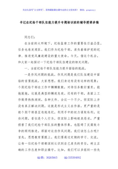/ 书记在纪检干部队伍能力提升专题培训班的辅导授课讲稿