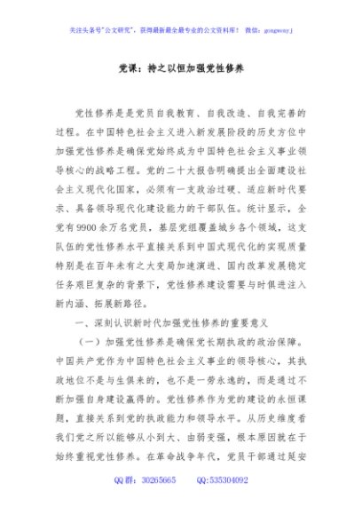 / 党课:持之以恒加强党性修养