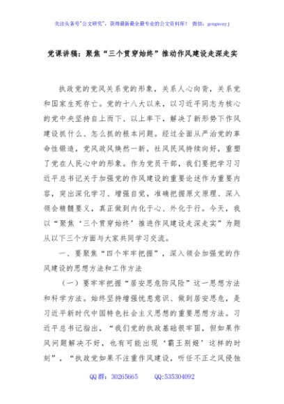 / 党课讲稿:聚焦“三个贯穿始终”推动作风建设走深走实
