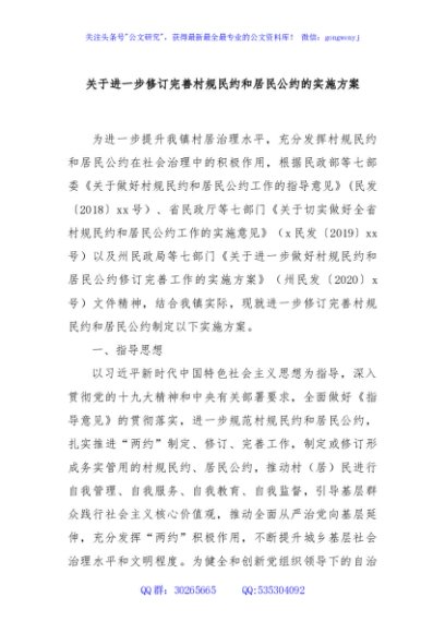 / 关于进一步修订完善村规民约和居民公约的实施方案