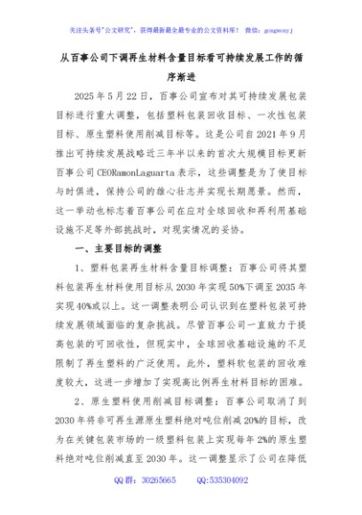 / 从百事公司下调再生材料含量目标看可持续发展工作的循序渐进
