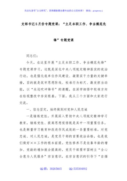 / 支部书记5月份专题党课:“立足本职工作、争当模范先锋”专题党课