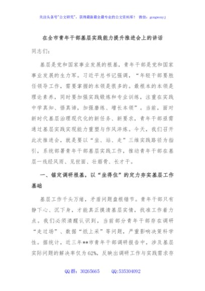 / 在全市青年干部基层实践能力提升推进会上的讲话